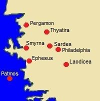 11 die sprach: Was du siehst, schreibe in ein Buch und sende es den sieben Gemeinden[14]: nach Ephesus und nach Smyrna und nach Pergamon und nach Thyatira und nach Sardes und nach Philadelphia und nach Laodizea!